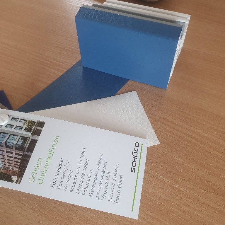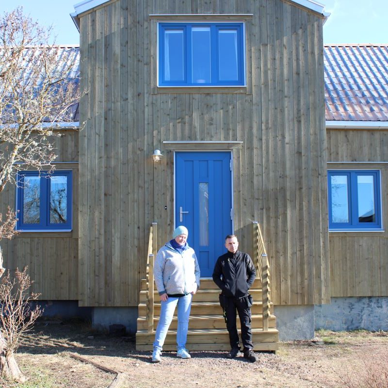 Nästa steg var att ta kontakt med företaget RR Constructions JS som är en känd tillverkare av glasskonstruktioner och göra en beställning av 10 st. fönster och 3 st. ytterdörrar. Vår kund ville ha blå fönsterkarmar på utsidan och vita på insidan. Färgerna heter Brilliant blue respektive Pure white. Produktionen av fönstren och dörrarna tog 5 veckor.