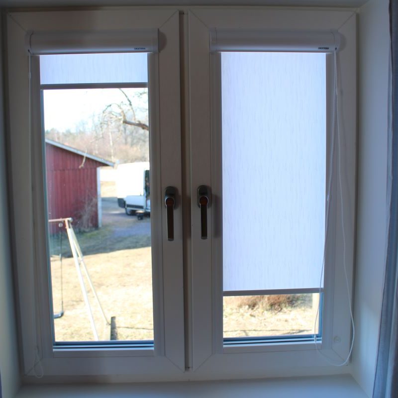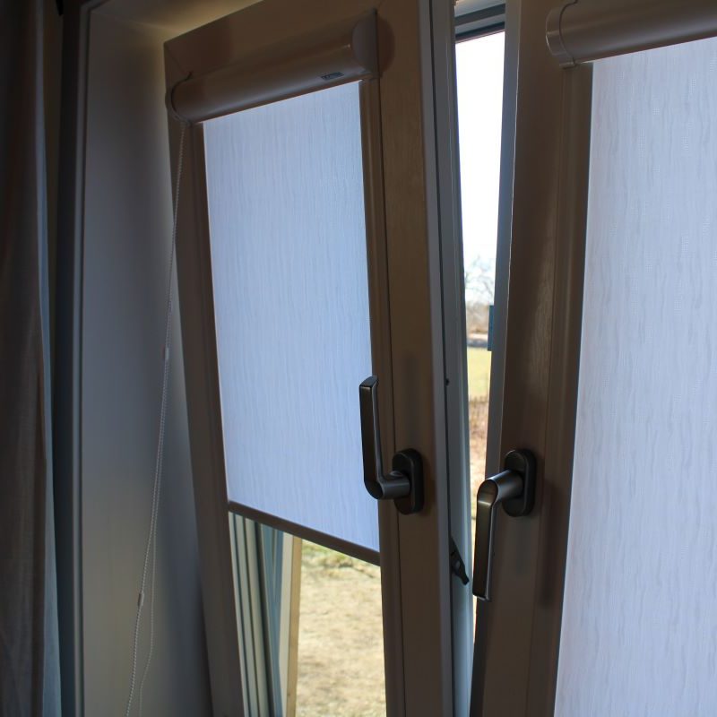 Därefter gick vi över till utformning av fönstren på insidan. Nya fina rollups blev beställda och monterade på plats. Fönstertillverkaren, RR Constructions JS, hjälpte oss att välja färg och mönster för rollups som matchar fönsterkarmarna.