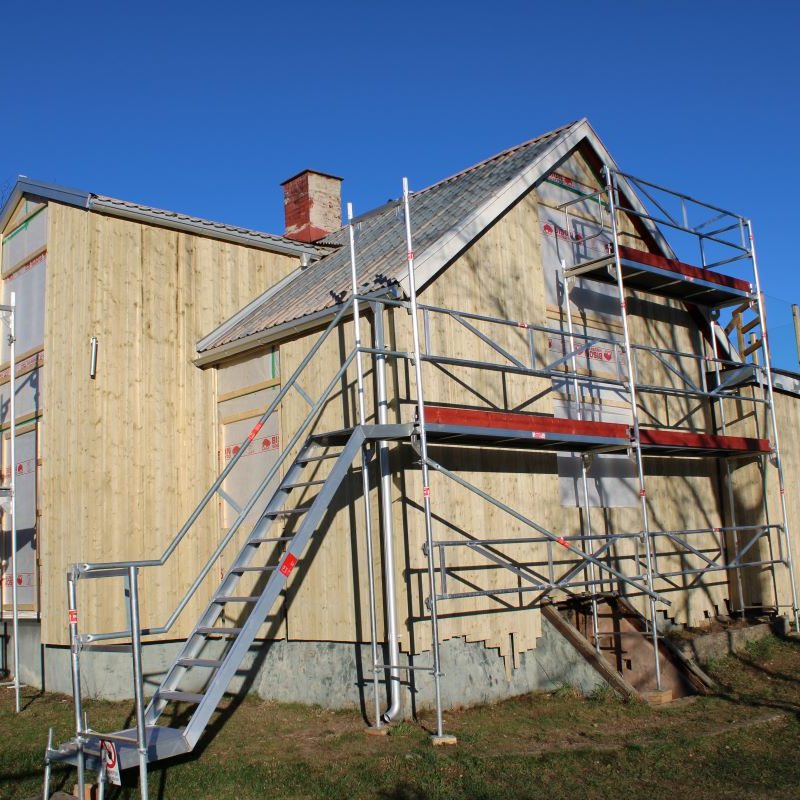 I samband med vårt besök till fastigheten i fråga lyssnade vi på vår nya kunds önskemål och diskuterade ett tänkbart upplägg av arbeten. Sen mätte vi på alla dörrarna och fönstren samt ytterväggarna och tog fram en kostnadskalkyl. Vår offert blev accepterad av kunden, och vi kunde göra upp en plan för arbetsprocessen fördelad på tidsaxeln.