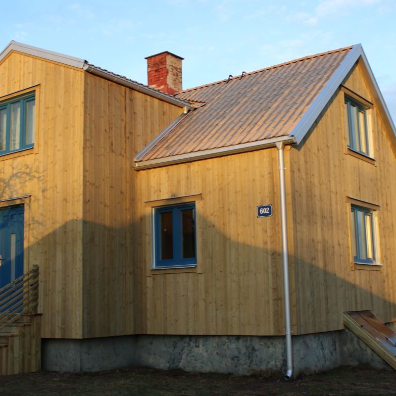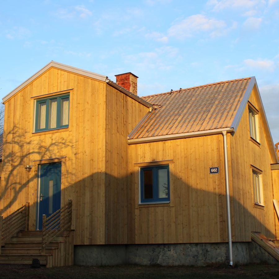 Enligt vårt förslag har järnvitriol med silverbets (metallsulfat/metallisk brun) använts som målarfärg för huset. Denna färg är ett utmärkt val om man vill färgsätta obehandlat trä på utsidan av byggnader. Resultatet man får är en fin gråaktig färg; träytan täckt med järnvitriol ser naturlig ut, som om den har åldrats av sig själv ute i naturen. Så småningom, som resultat av solens och fuktighets påverkan, får väggarna en snygg silvrig nyans.